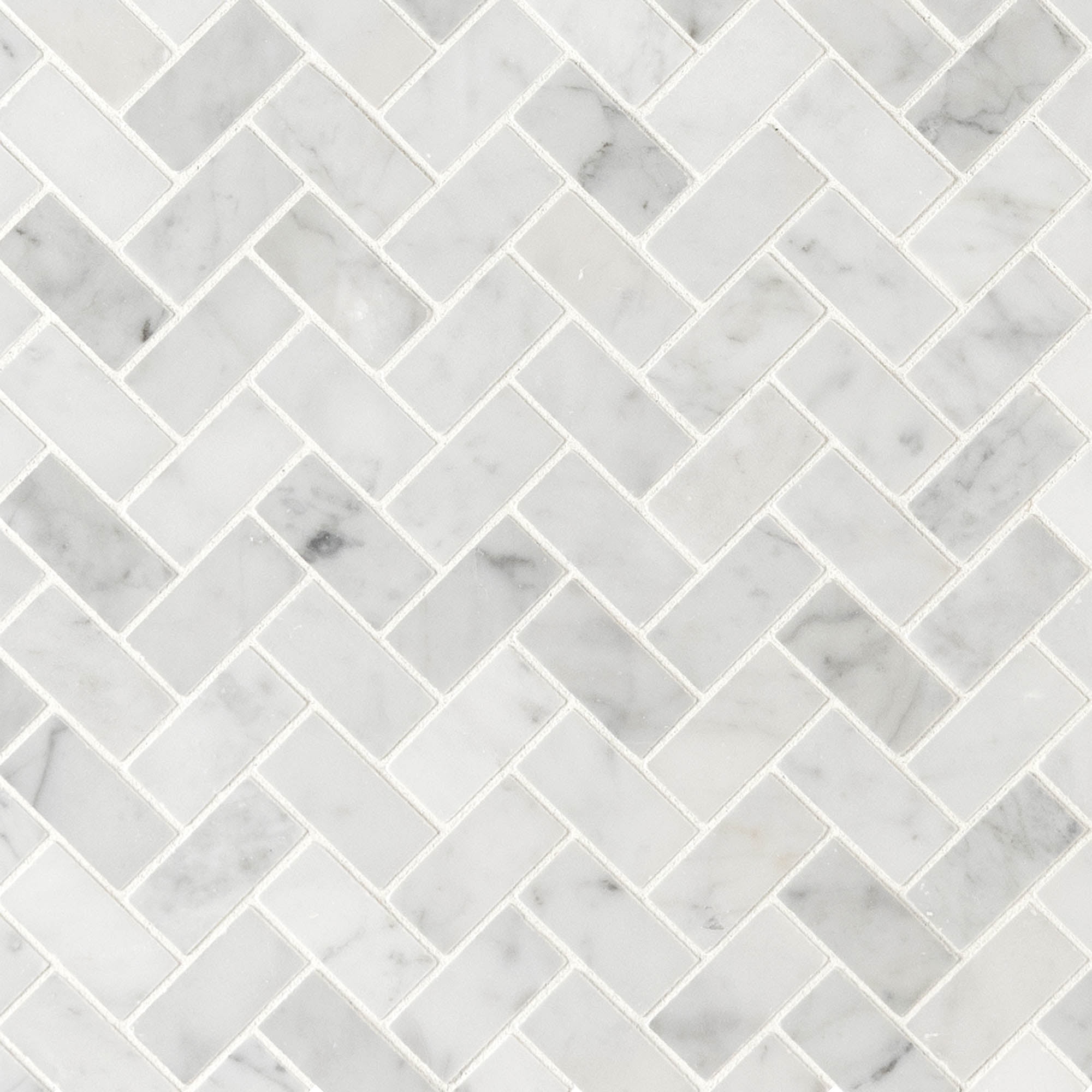 Carrara White Herringbone 1X3 Mosaic Polished/Honed Tilezz